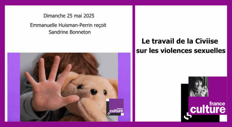 Emmanuelle Huisman-Perrin reçoit Sandrine Bonneton, pédopsychiatre à propos du travail de la Civiise sur les violences sexuelles.